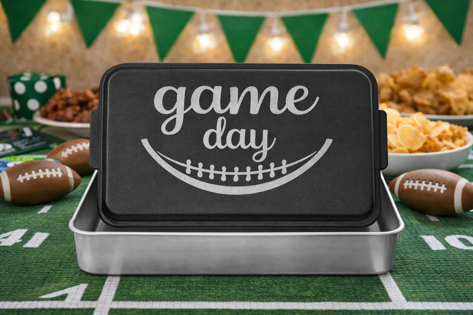 Game Day 9" x 13" Aluminum Cake Pan with Engraved Lid